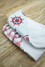Wrap your baby in cozy comfort with the Ahoy Little One Hooded Baby Towel, designed to make bath time a joyful adventure. Crafted with a plush cotton loop interior, this towel gently dries and wraps your little one in softness, keeping them warm and snug. Its playful nautical-inspired designs—featuring anchors, seagulls, a ship’s wheel, sailboats, and crabs—add a fun, seaside charm that sparks imagination and delight. Perfect for your little sailor or landlubber, it’s the ideal companion for drying off and settling in for sweet dreams after every bath. Durable and easy to care for, this towel brings warmth and whimsy to your baby’s daily routine. Ahoy!
